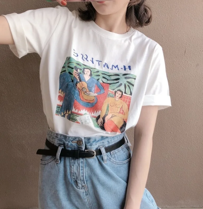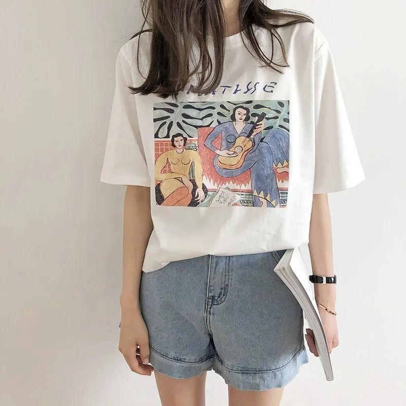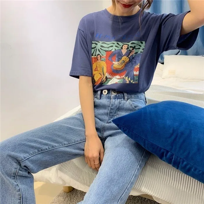 Product Name: Vintage imprimé O cou à manches courtes femme coton T shirt mode 2019 décontracté lâche filles été coton t shirts pulls