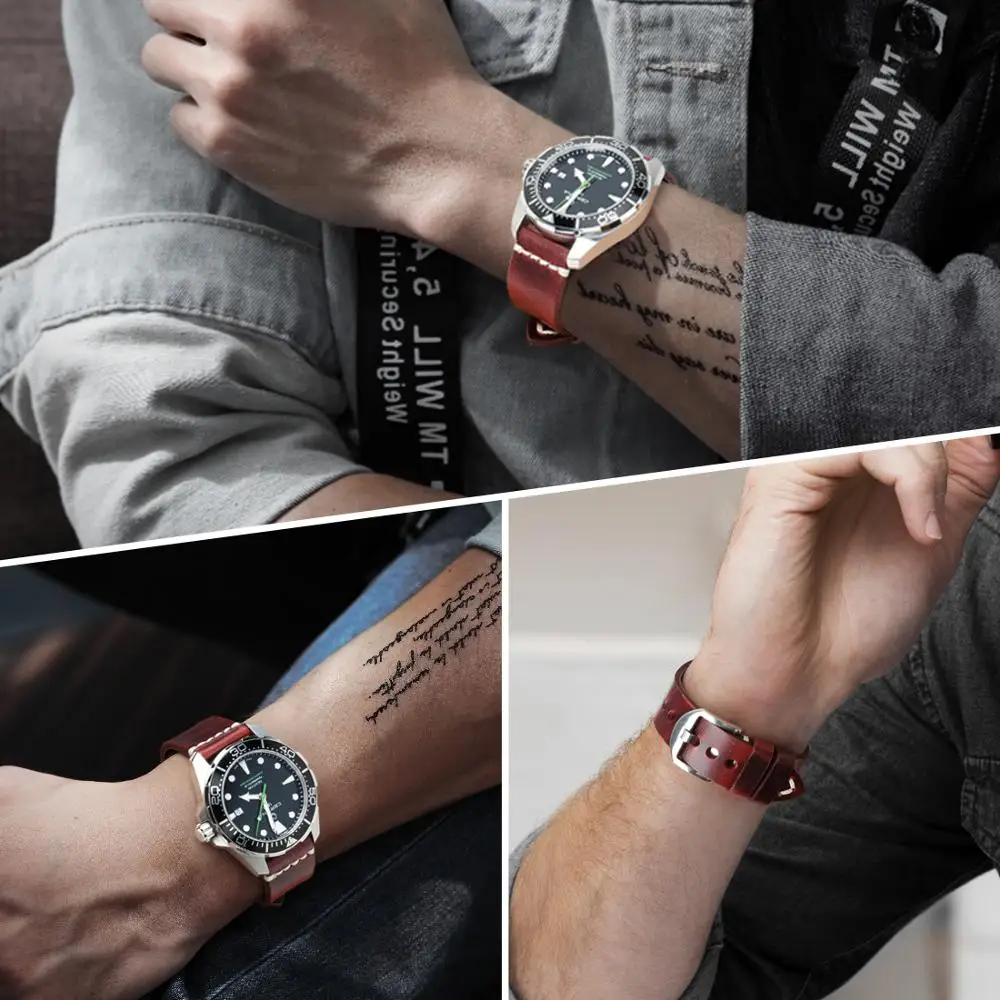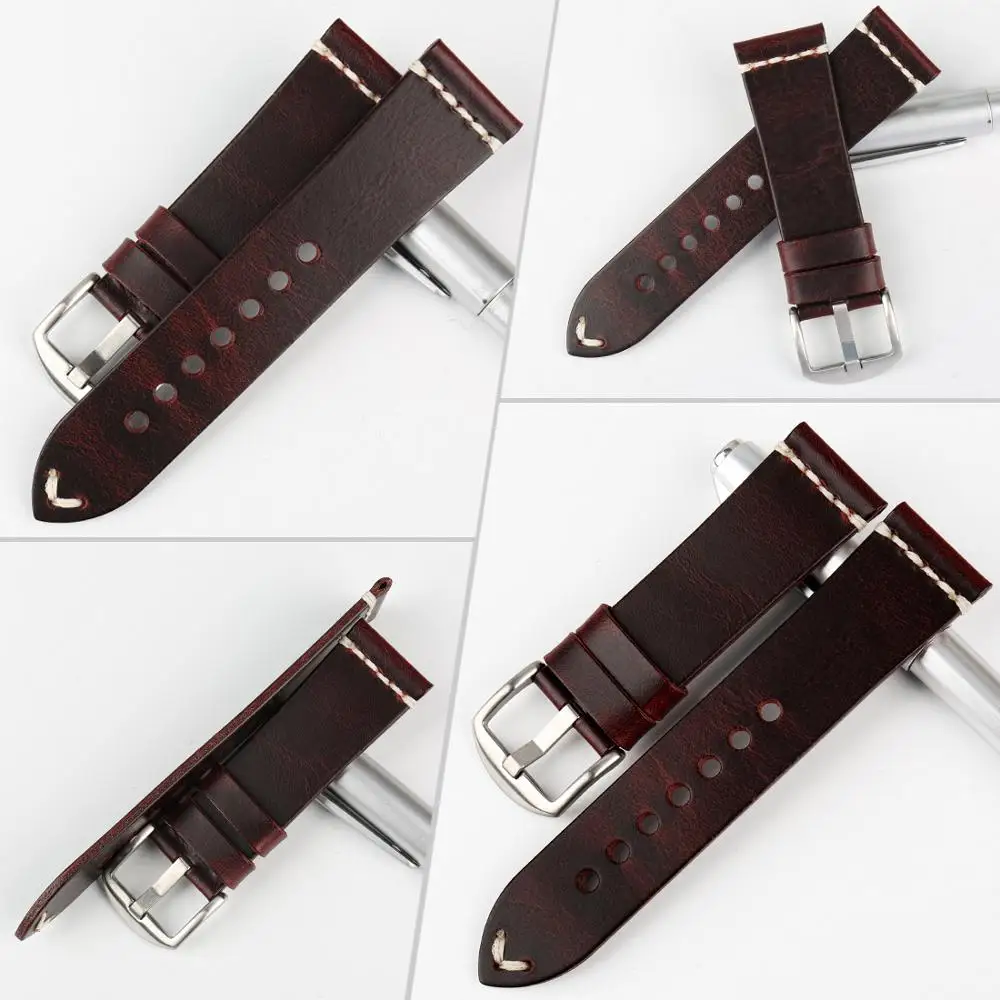 Product Name: MAIKES bracelet de montre en cuir de vache véritable bracelets de montre faits à la main bracelet rouge Vintage pour bracelet de montre Panerai 20mm 22mm 24mm