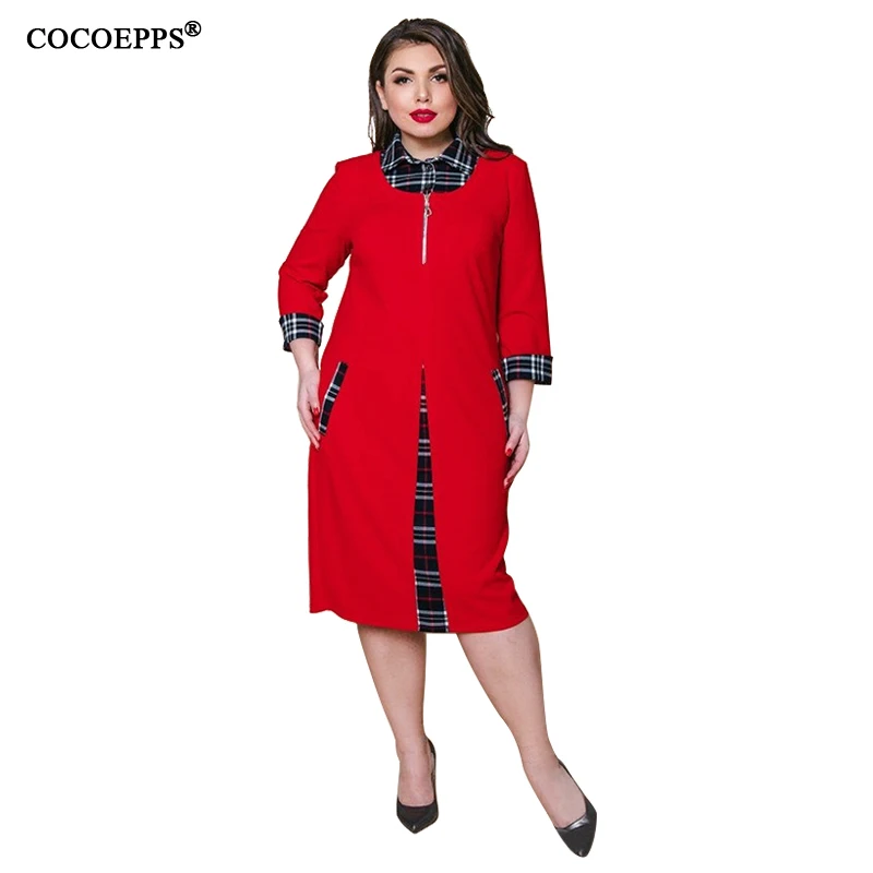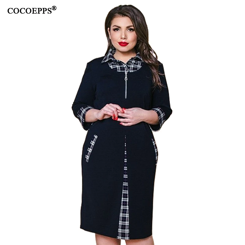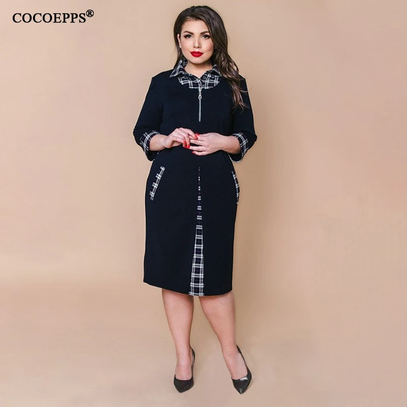 Product Name: 5XL 6XL automne grande taille robe à carreaux 2019 hiver décontracté femmes grande taille travail robe dame bureau 4XL grande taille moulante robe de fête