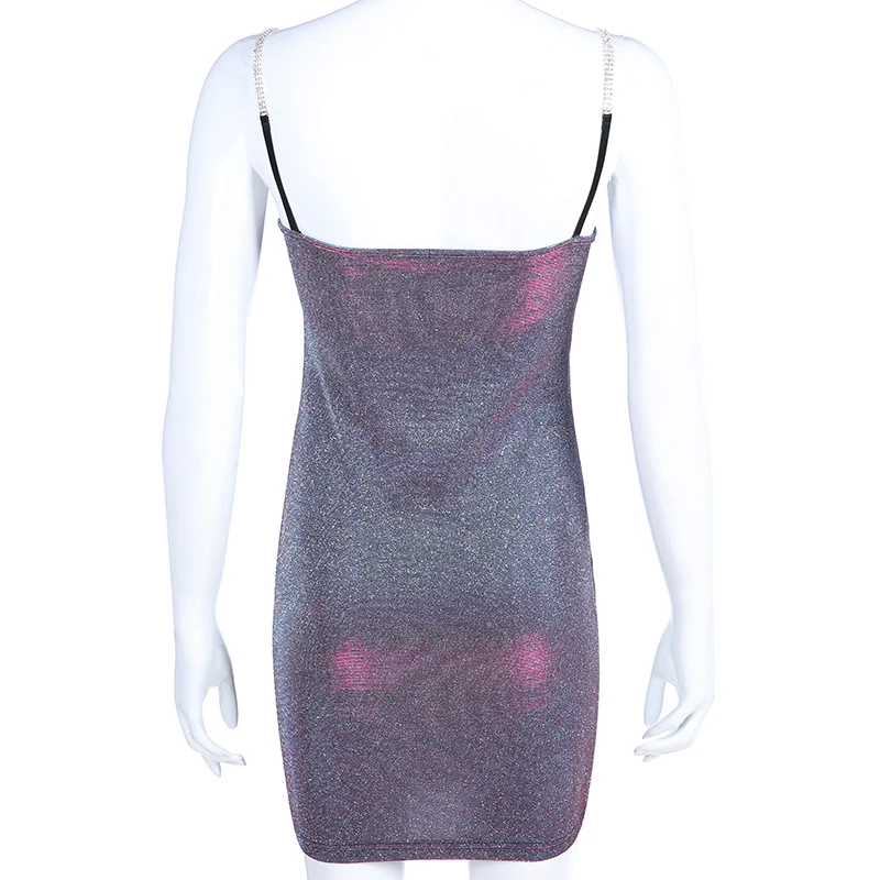 Product Name: Sweet own Chic argent paillettes Mini robe diamant chaîne Spaghetti sangle robe d été Slim Sexy femmes vêtements 2019 tenue de club