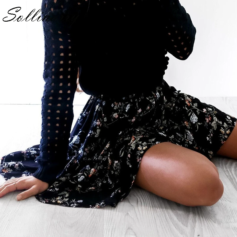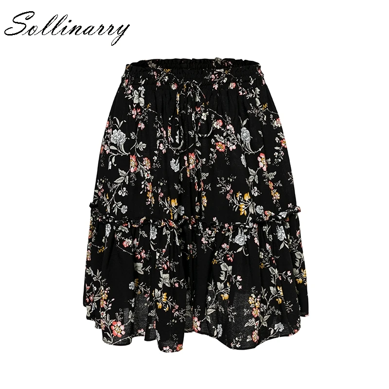 Special Offer Sollinarry Floral en mousseline de soie jupes décontractées femmes automne taille haute mode à volants fille hiver jupe 2019 plage noir féminin jupe Discount 40% Today!