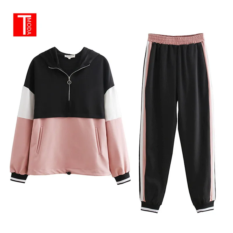 Special Offer 2019 Survêtement Femmes Ensemble Deux Pièces Tenues pour Les Femmes Mince Couleur Couture Veste décontracté Veste et Jogging pantalon de costume décontracté Discount 40% Today!