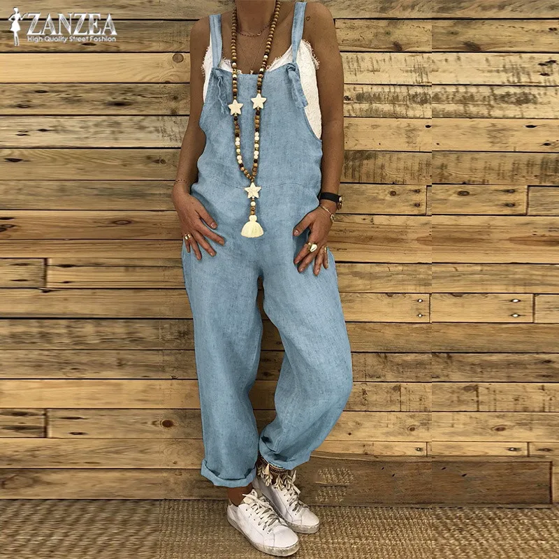 . (41% Off) Vente ZANZEA 2019 été Pantalon femme salopette Vintage coton combinaisons combishort femme Harem Pantalon grande taille barboteuses S 5XL Pas Cher Prix.