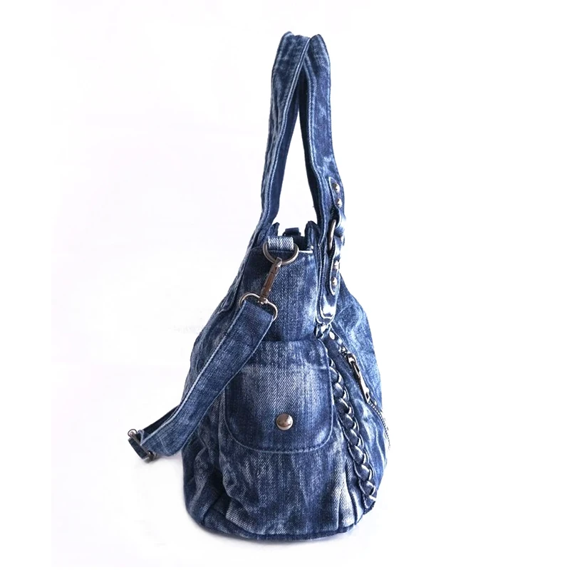 Product Name: IPinee marque femmes sac 2019 mode Denim sacs à main femme Jeans sacs à bandoulière armure conception femmes fourre tout sac