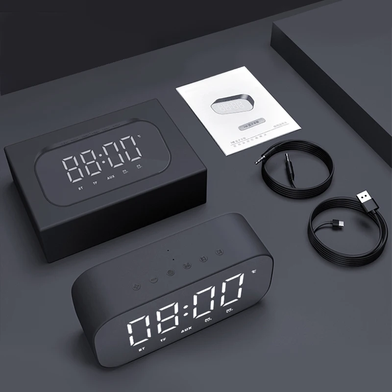 Product Name: Haut parleur Bluetooth avec Radio FM LED miroir réveil Subwoofer lecteur de musique Snooze horloge de bureau sans fil