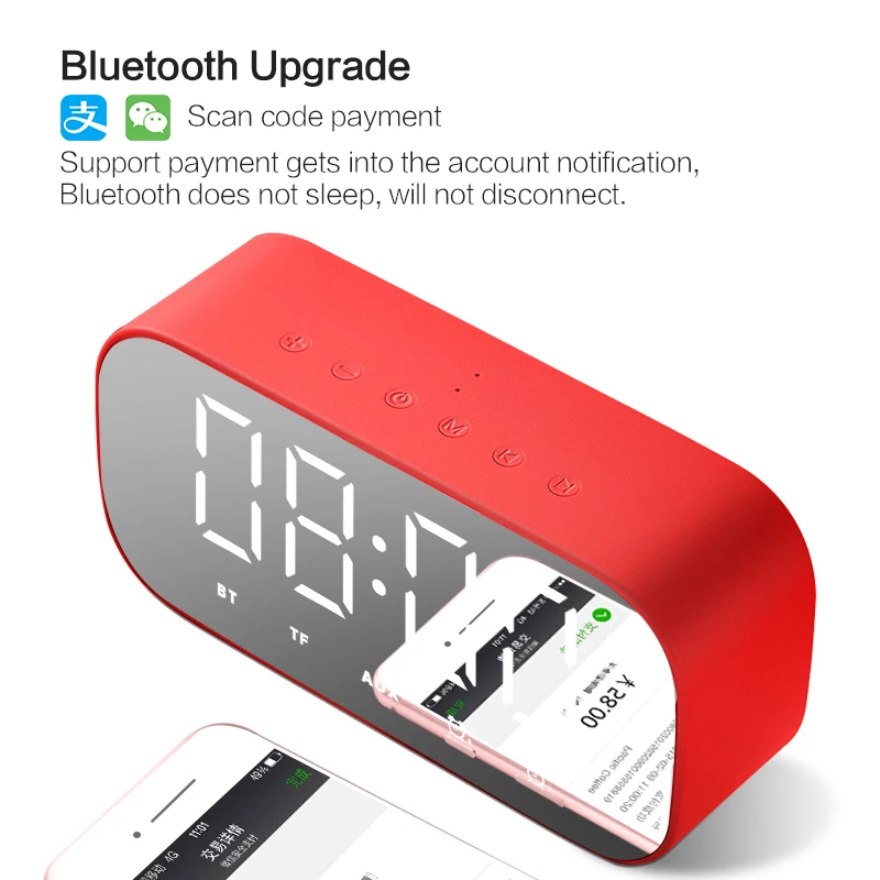 Special Offer Haut parleur Bluetooth avec Radio FM LED miroir réveil Subwoofer lecteur de musique Snooze horloge de bureau sans fil Discount 5% Today!