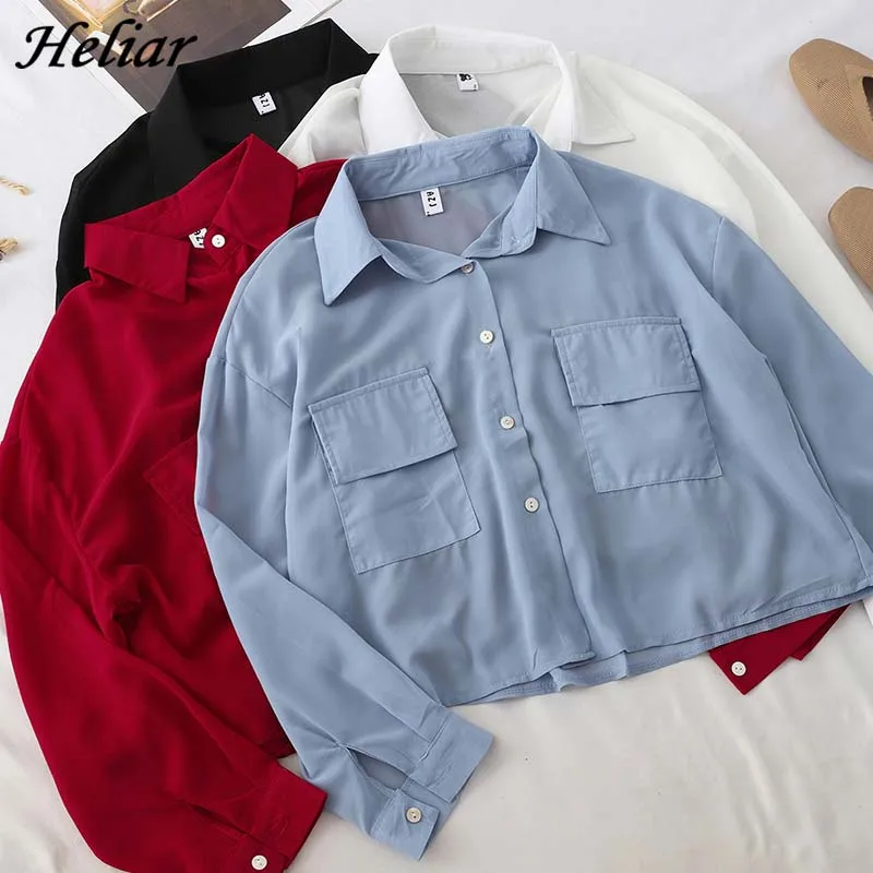 Special Offer HELIAR 2019 automne OL Blouse Cargo poche Blouse femmes Blouse mode manches longues femme col rabattu chemise boutonnée Discount 50% Today!