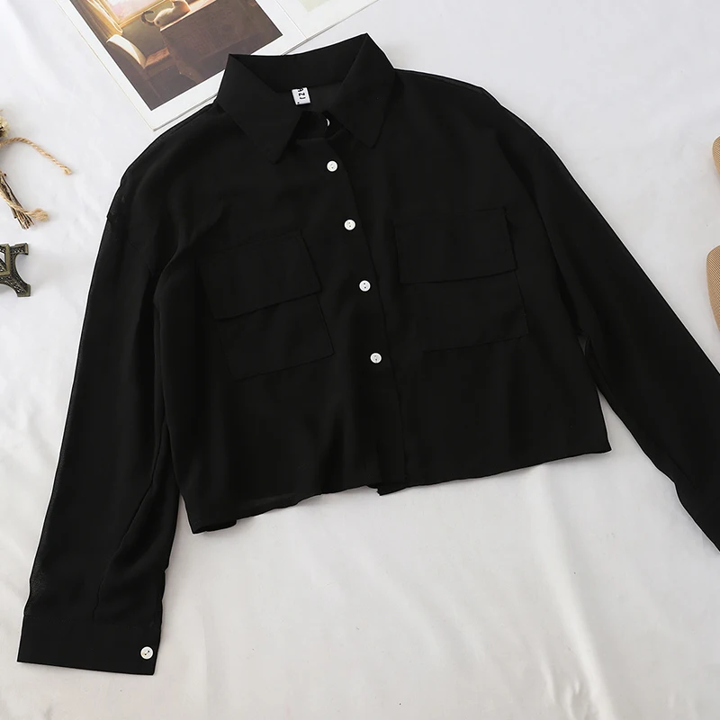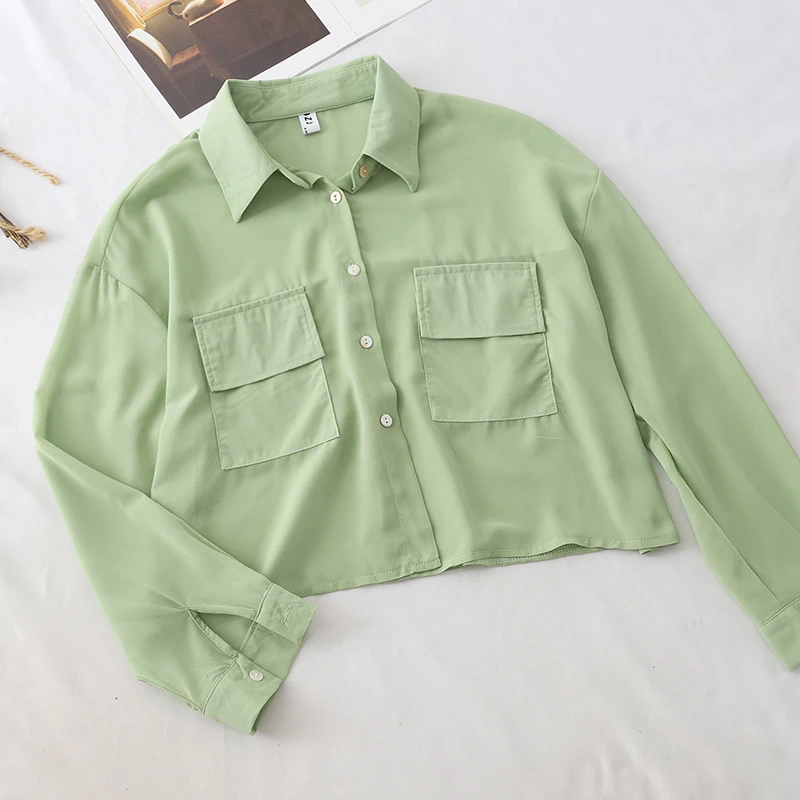 HELIAR 2019 automne OL Blouse Cargo poche Blouse femmes Blouse mode manches longues femme col rabattu chemise boutonnéeProduct Id: 4000071459334