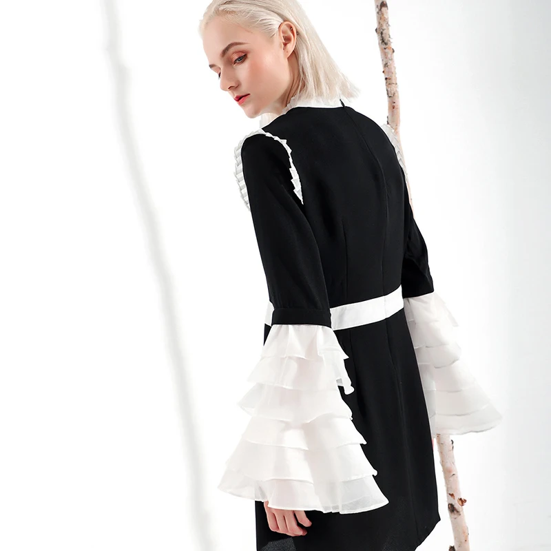 . (17% Off) Achat [EAM] 2019 nouveau printemps été col à volants manches longues Flare Hit couleur plissée blanc robe ample femmes mode marée YC001 Pas Cher Prix.
