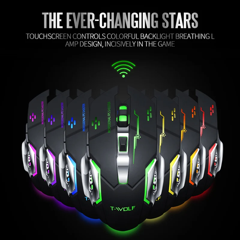 Product Name: T WOLF Q13 souris Rechargeable sans fil souris de jeu ergonomique silencieuse 6 touches RGB rétro éclairage 2400 DPI pour ordinateur portable Pro Gamer