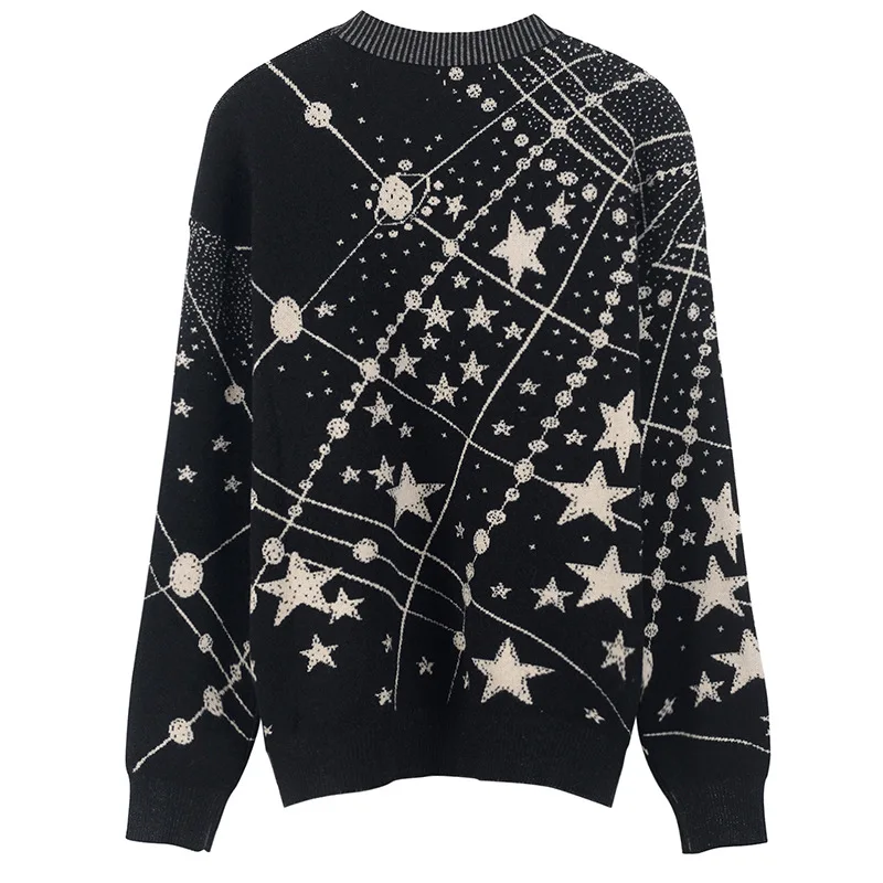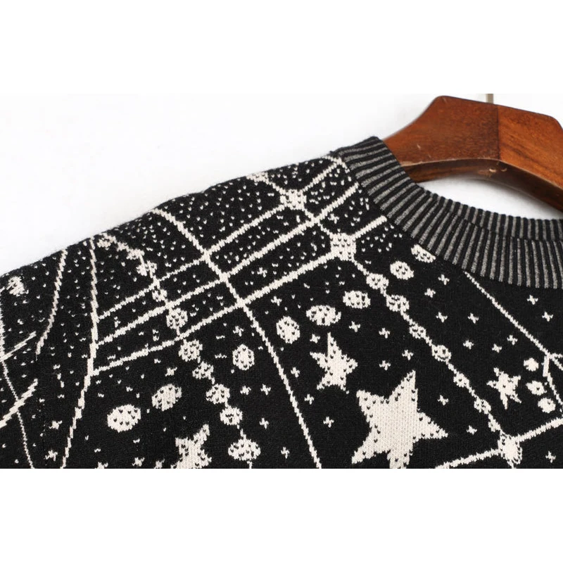 Product Name: 2018 automne hiver Laides Jacquard pulls rétro galaxie étoile motif chandail femmes Vintage à manches longues pulls