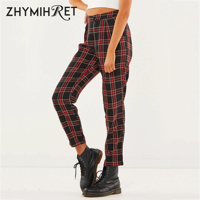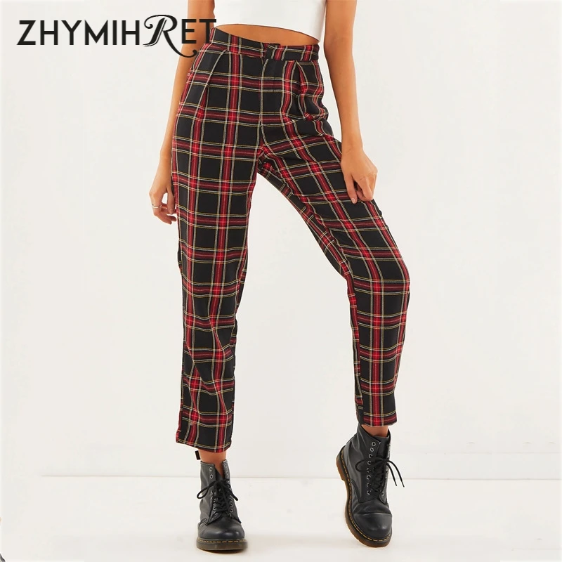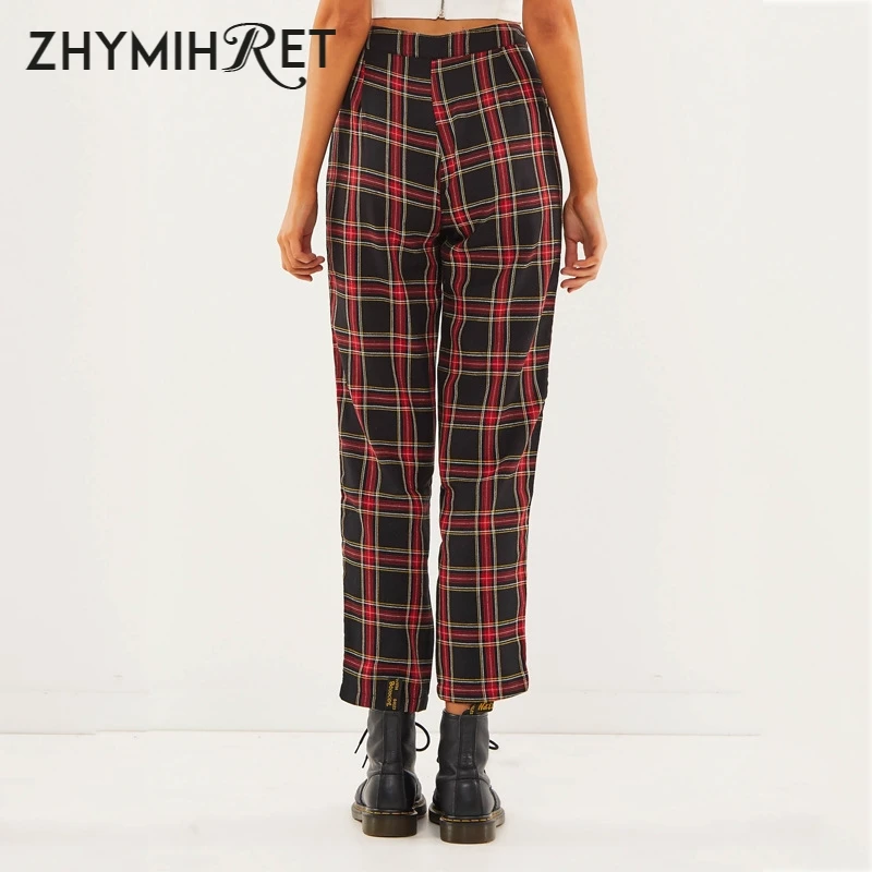 Special Offer ZHYMIHRET 2019 automne coton droit Plaid femmes Pantalon cheville longueur fermeture éclair Capris décontracté taille moyenne Pantalon Pantalon Femme Discount 36% Today!