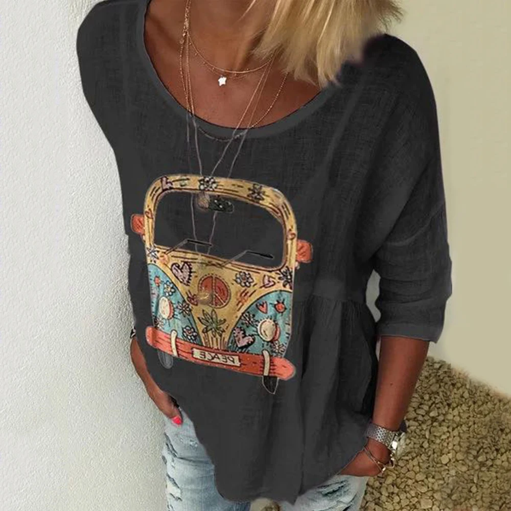 . (36% Off) Achat 5XL grande taille femmes hauts et chemisiers O cou demi manches courtes dames hauts décontracté voiture imprimer coton Blouses été femme 2019 Pas Cher En Ligne.
