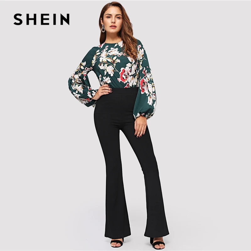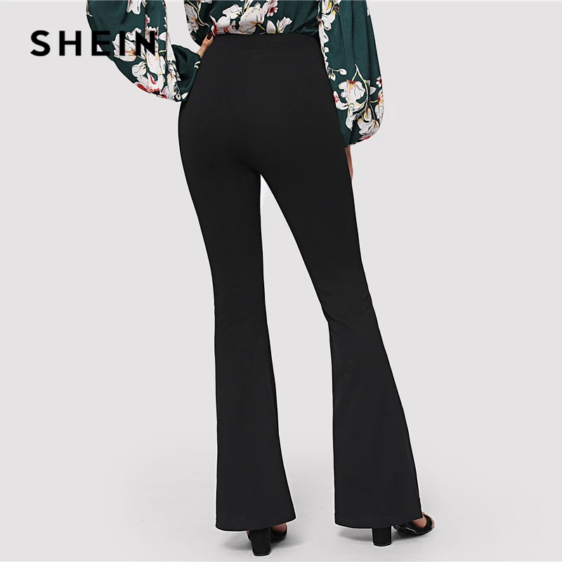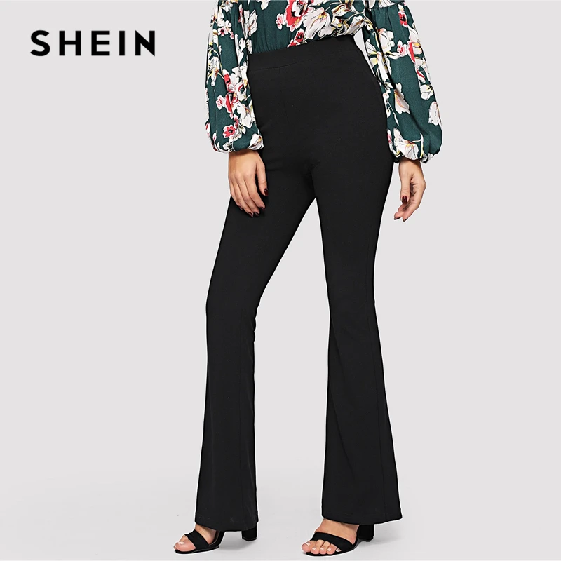 Special Offer SHEIN noir élégant bureau dame taille élastique Flare ourlet pantalon décontracté solide minimaliste pantalon 2019 printemps femmes pantalon Discount 40% Today!