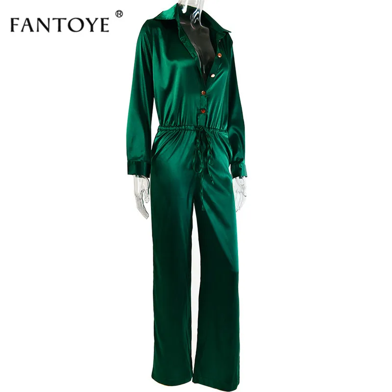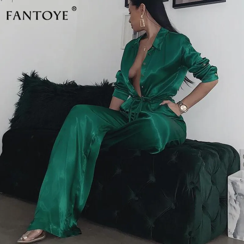 Special Offer Fantoye élégant lâche Satin moulante Bandage combinaison femmes 2019 printemps Sexy solide revers profond col en V combishorts dames Streetwear Discount 40% Today!