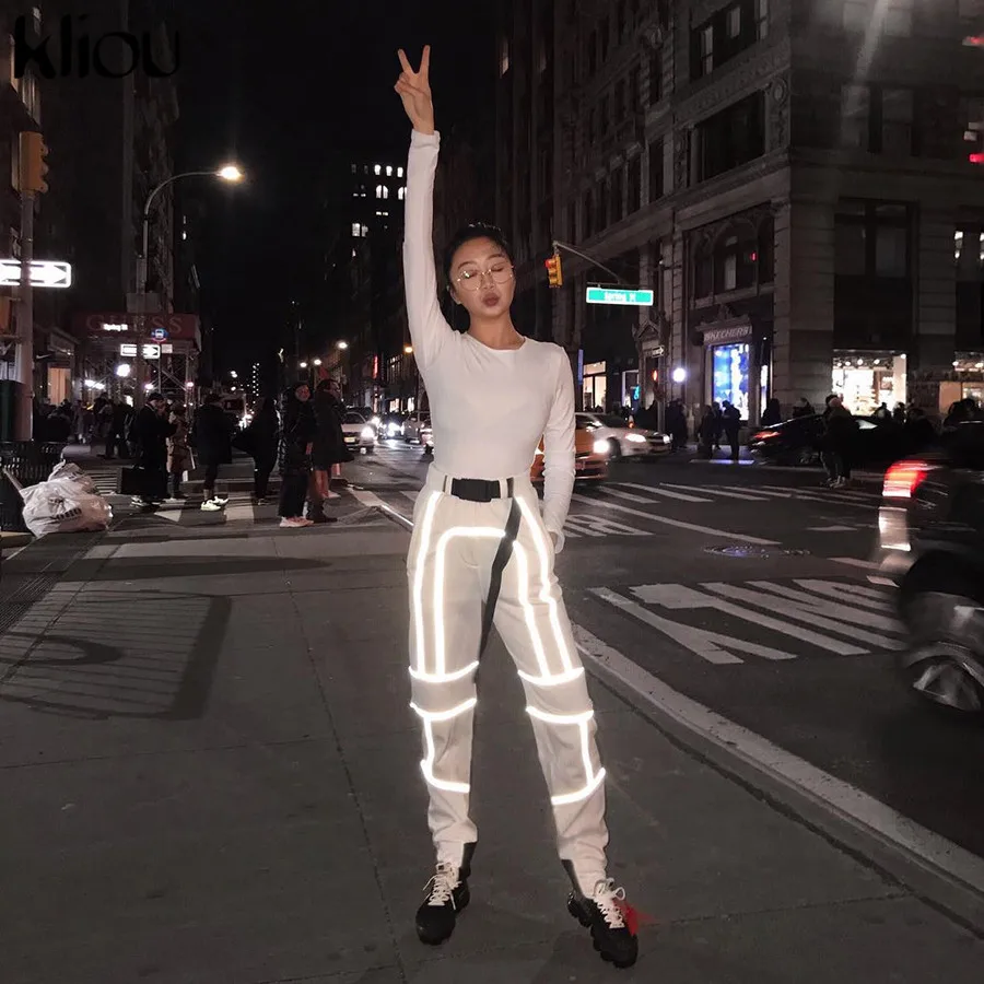 Special Offer Kliou femmes mode rue réfléchissant patchwork cargo pantalon 2019 nouveauté veste pour homme avec ceintures poches tricoté pantalon Discount 50% Today!