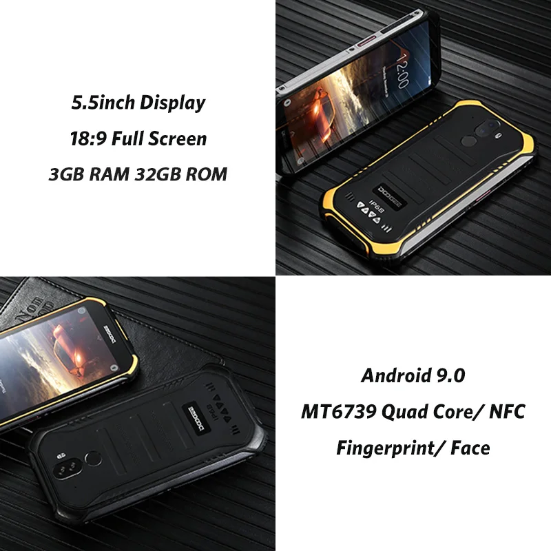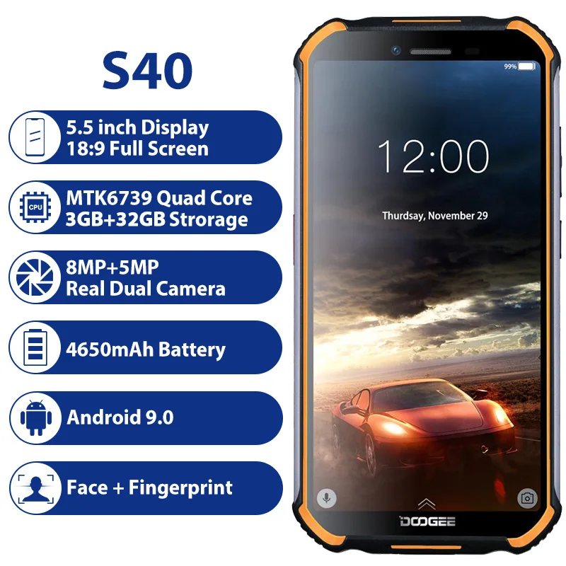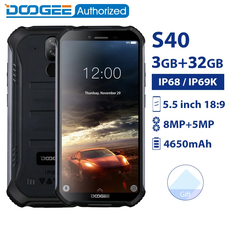 Product Name: DOOGEE S40 IP68 IP69K smartphone étanche MTK6739 Quad Core 3GB 32GB 5.5 Android 9.0 téléphone portable 4650mAh 8.0MP téléphone robuste
