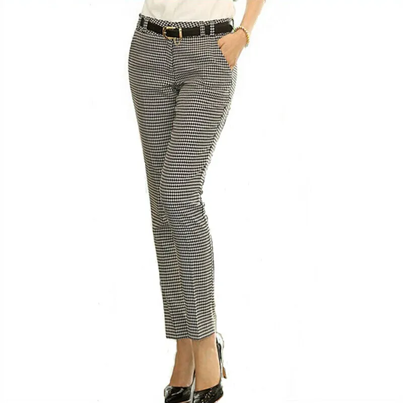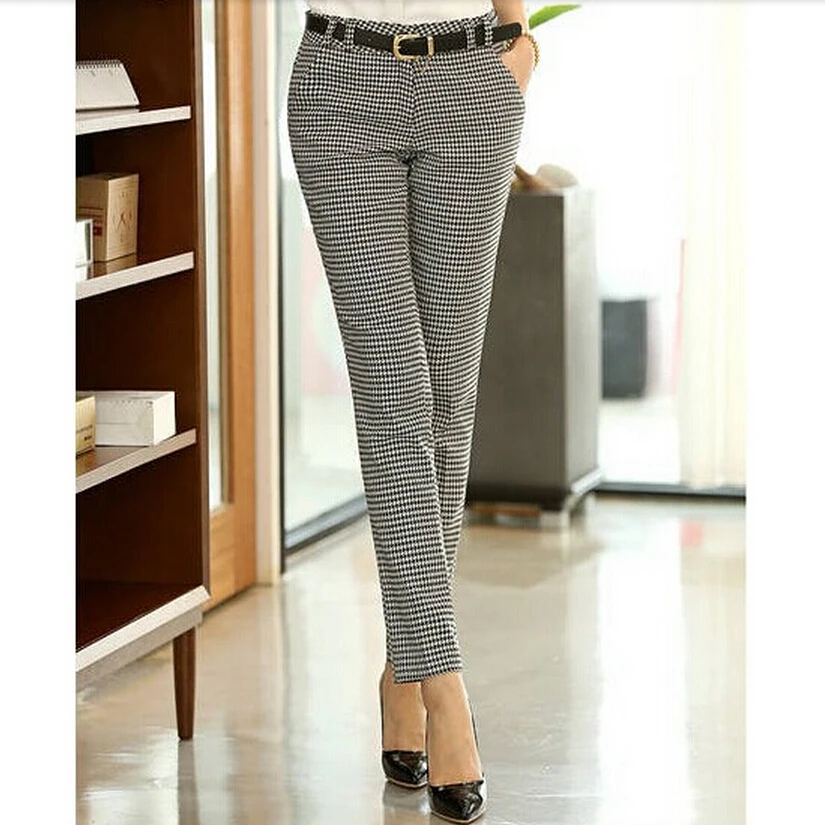 Special Offer 2019 printemps été automne femmes Slim pantalons décontractés travail porter carrière pied de poule pantalon droit crayon pantalon femmes pantalon femme Discount 15% Today!