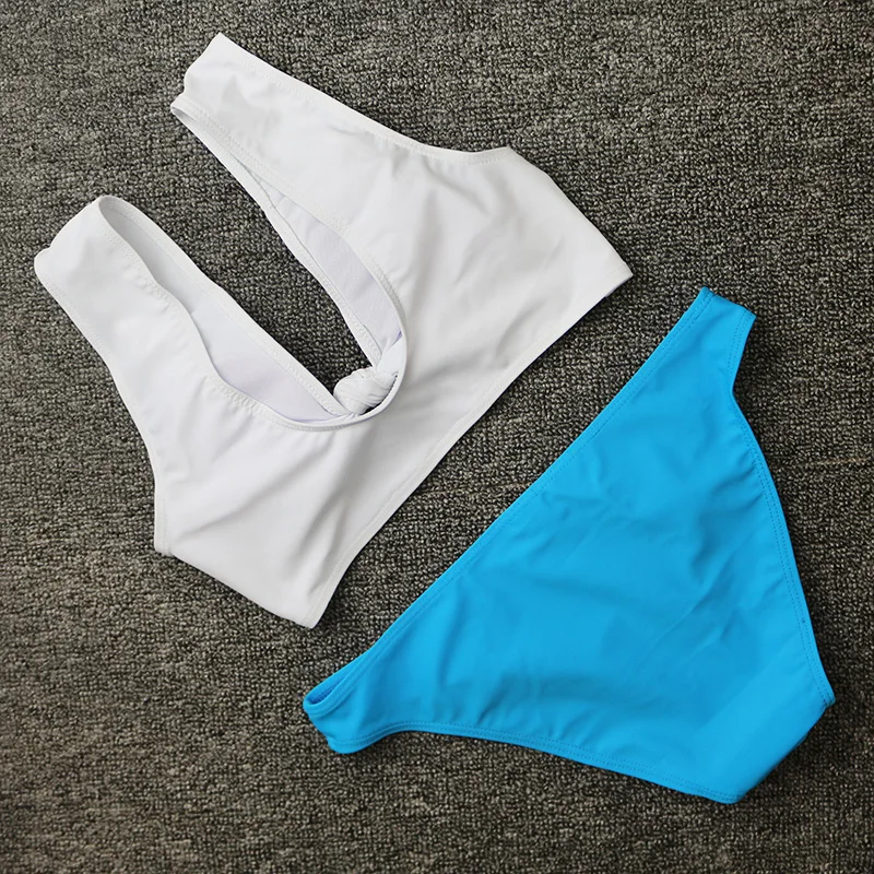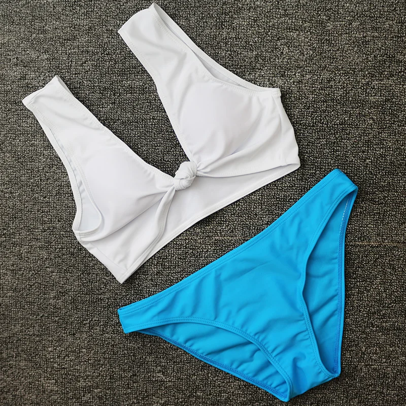 Product Name: PLAVKY 2019 Lady Sexy blanc bleu profond V avant noué Biquini maillot de bain maillot de bain maillots de bain femmes Bikini brésilien