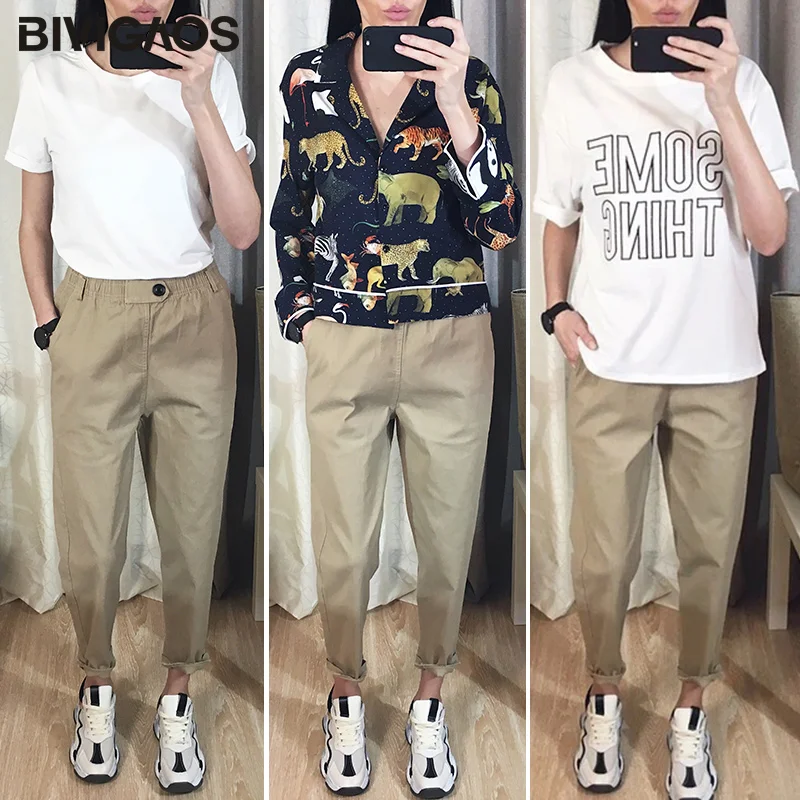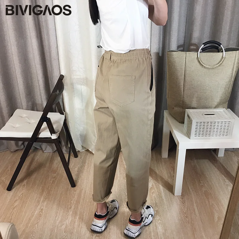 Special Offer BIVIGAOS 2019 nouveau printemps femmes vêtements salopette décontracté casual Harem pantalon coréen élastique taille Triangle boucle Cargo pantalon Discount 26% Today!