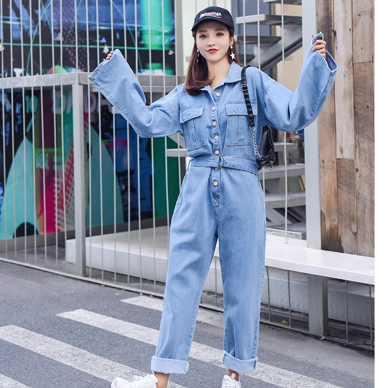 Special Offer Mode Streetwear Style Denim salopette femmes 2019 automne manches longues body taille haute Jeans moulante barboteuse jambe large combinaison Discount 28% Today!