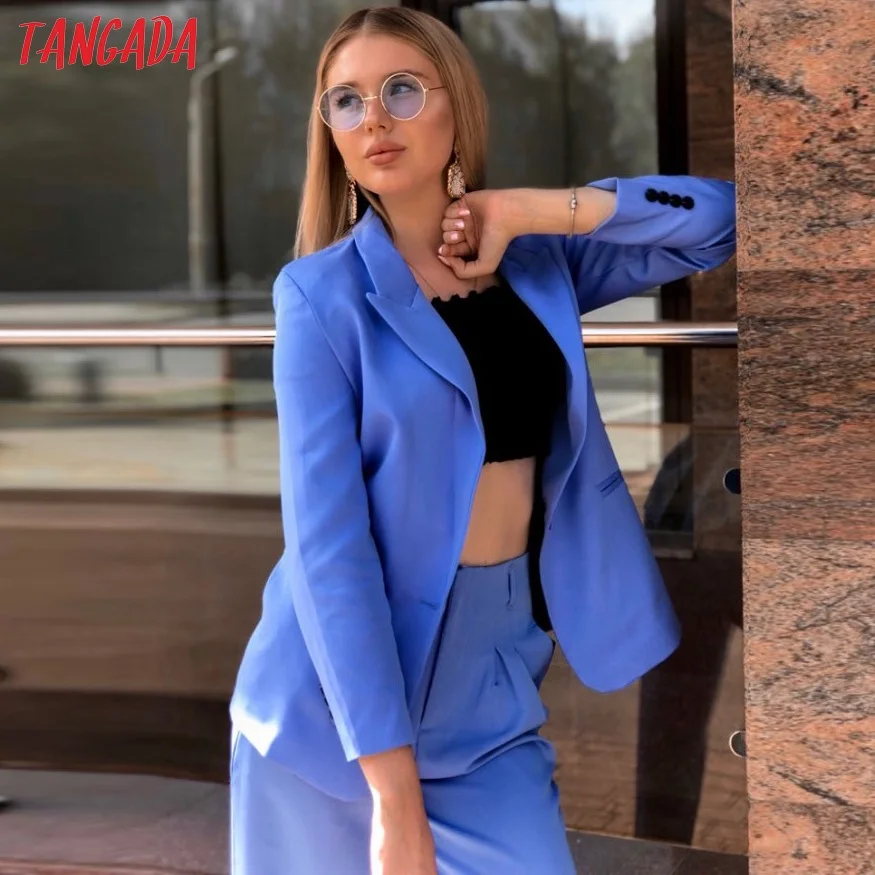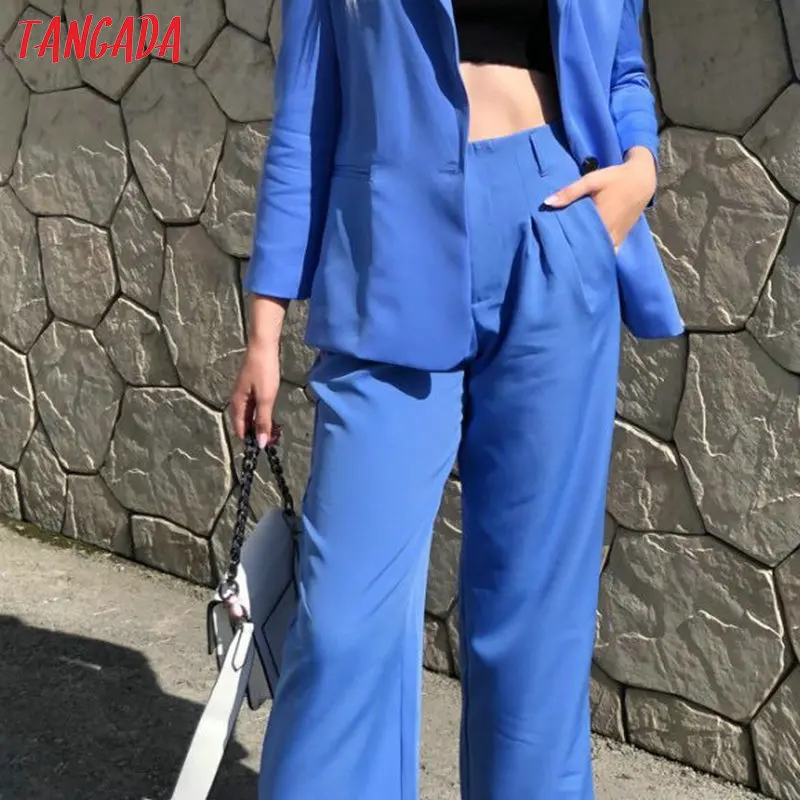Special Offer Tangada femmes bleu plissé pantalons droits boutons 2019 mode dames costume pantalon taille haute pleine longueur chic pantalon SL235 Discount 30% Today!