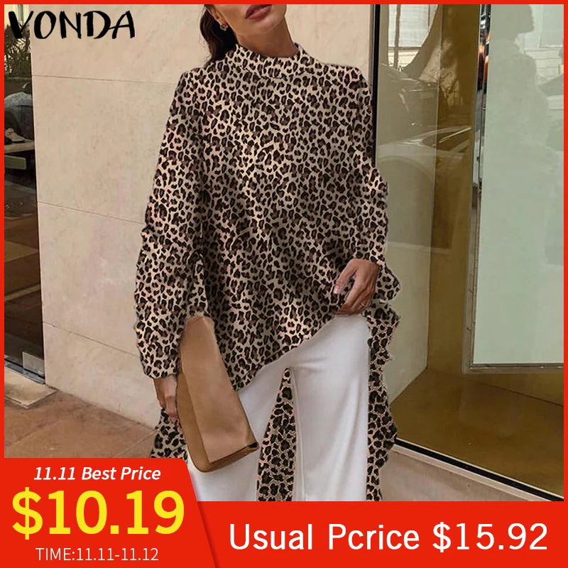 Special Offer VONDA 2019 décontracté Blouses à manches longues élégant Sevy été imprimé léopard Blouse OL chemise asymétrique longues hauts grande taille Discount 31% Today!