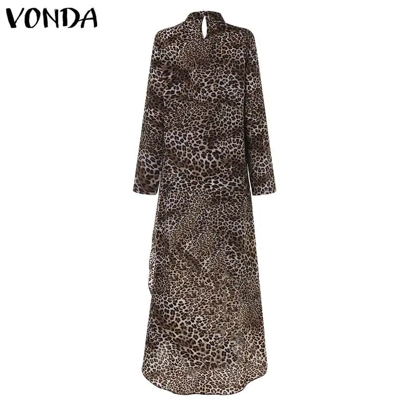 Product Name: VONDA 2019 décontracté Blouses à manches longues élégant Sevy été imprimé léopard Blouse OL chemise asymétrique longues hauts grande taille