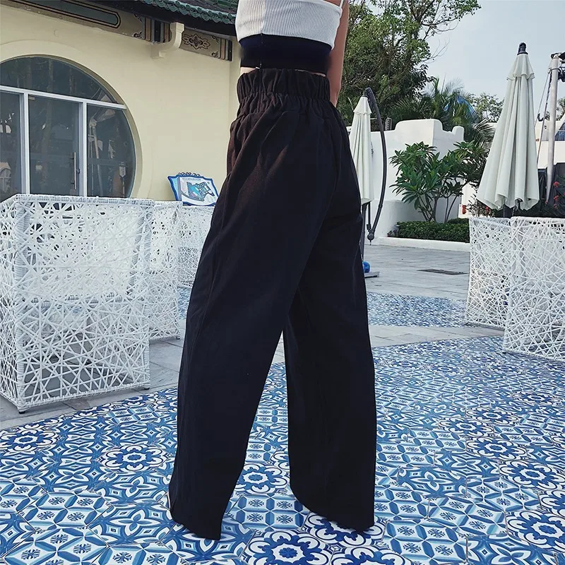 . (32% Off) Vente Deuxtwinstyle coréen large jambe pantalon pour femmes taille haute élastique bouton fendu gris femmes pantalon Plus épais 2019 automne hiver Pas Cher Prix.