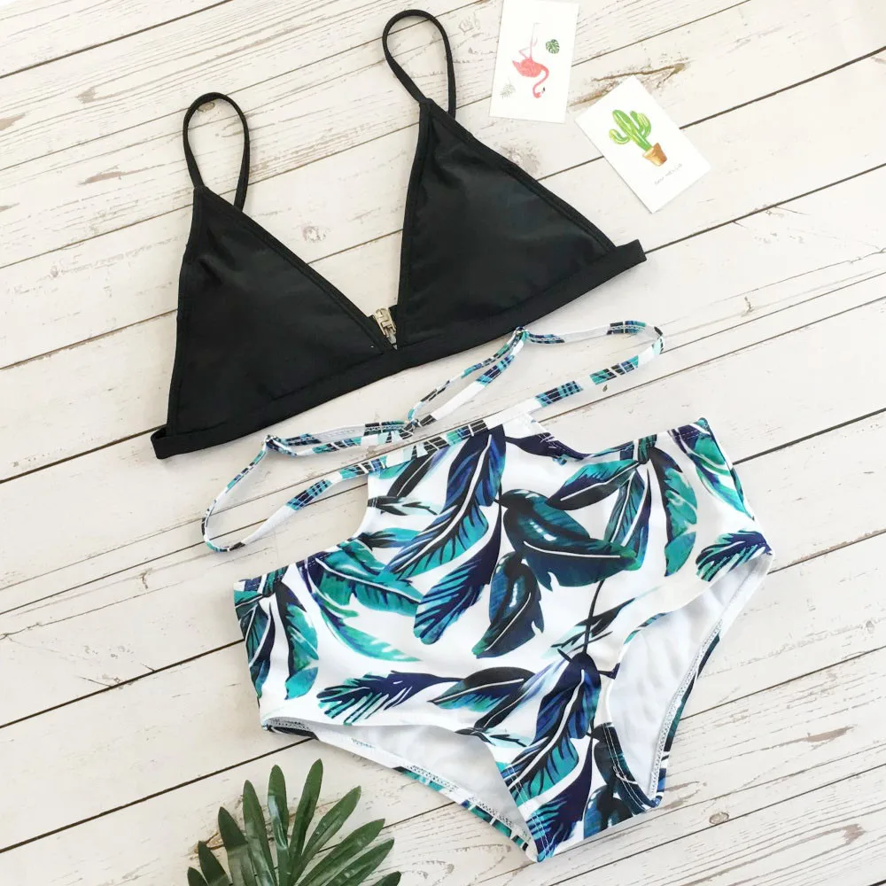 Product Name: Sexy Tropical palmier feuille taille haute Bikini 2019 maillots de bain femmes maillot de bain femme découpé maillot de bain Biquini baigneurs Biquine