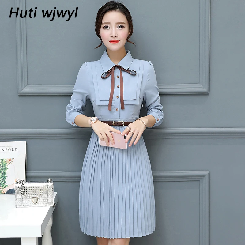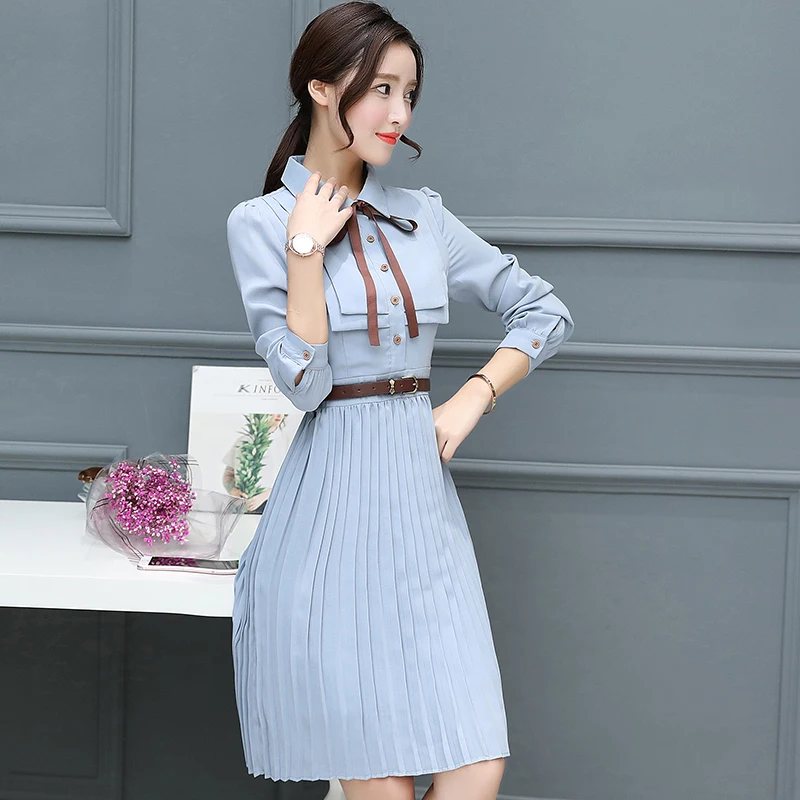 Special Offer 2019 automne hiver nouvelle robe mi longue en mousseline de soie moulante robes coréennes Boho 2019 femmes élégantes robes de fête à manches longues chemise robe Discount 34% Today!