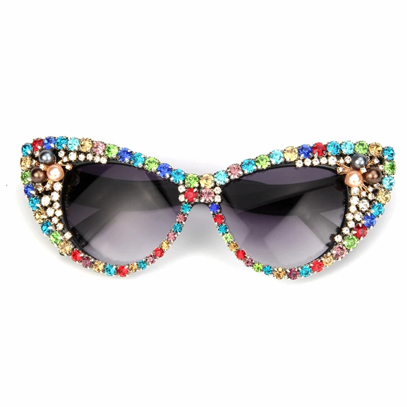 Product Name: 2018 surdimensionné lunettes de soleil femmes de luxe marque lunettes coloré strass chat yeux lunettes de soleil Vintage nuances lunettes Oculos