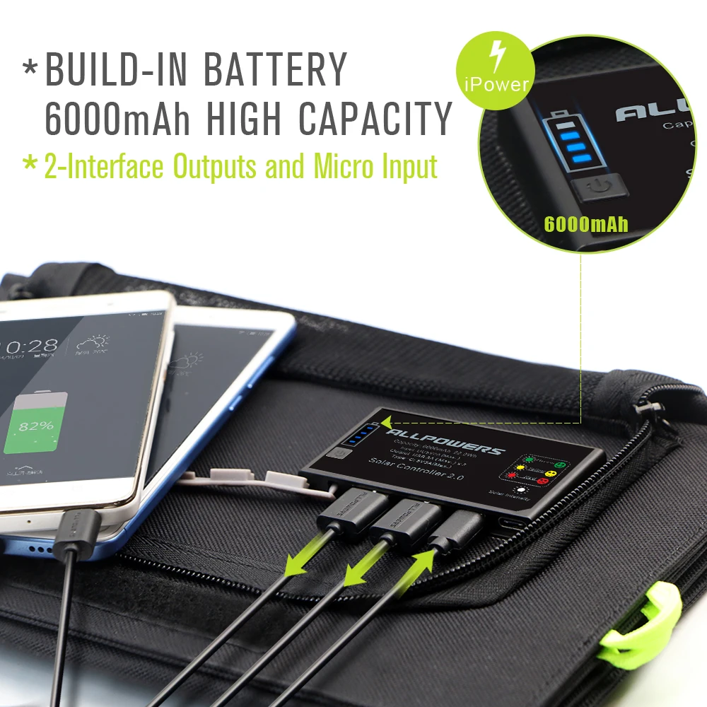 Product Name: Allpuissances chargeur solaire 5V 21W intégré 6000mAh batterie Portable cellules solaires pour iPhone 5 6 6s 7 8 X iPad Samsung Xiaomi Huawei