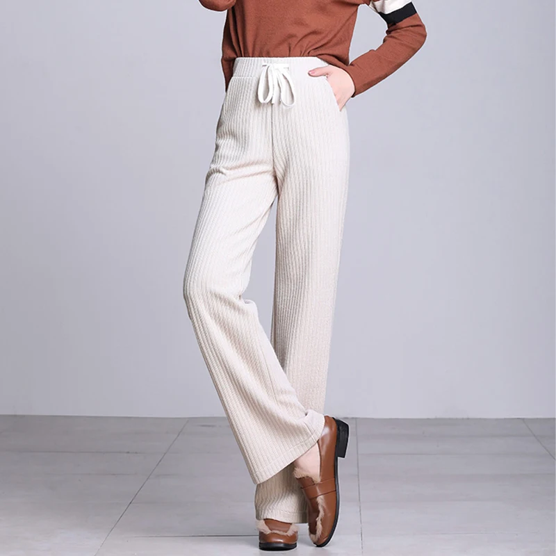 Product Name: Épaissir les pantalons tricotés femme pantalons chauds pour les femmes hiver 2018 taille haute pantalons à jambes larges femmes pantalon en laine tricot grande taille