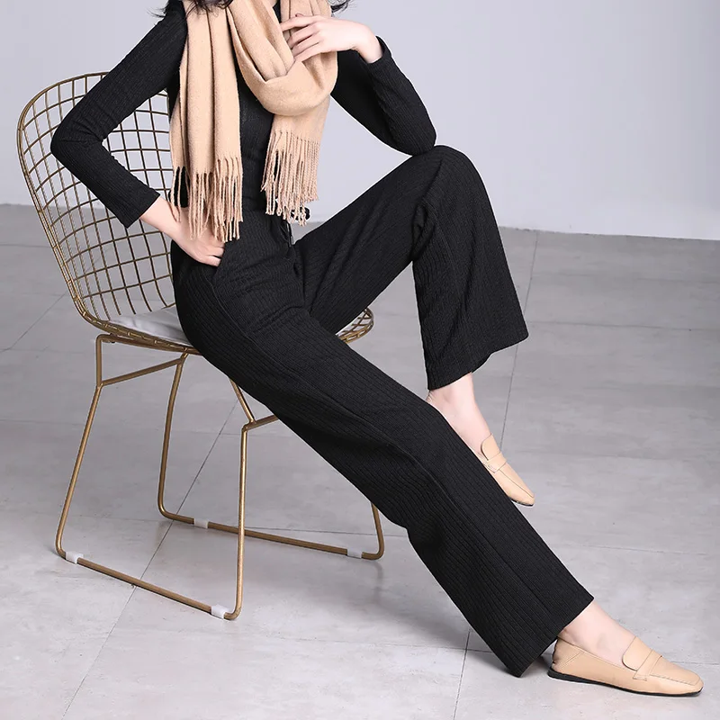. (35% Off) Acheter Épaissir les pantalons tricotés femme pantalons chauds pour les femmes hiver 2018 taille haute pantalons à jambes larges femmes pantalon en laine tricot grande taille Pas Cher En Ligne.