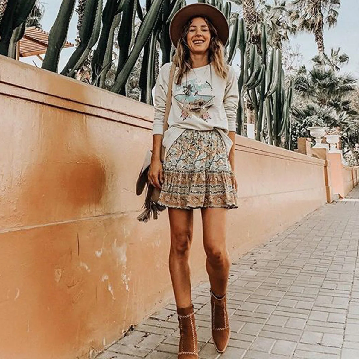 Product Name: Jastie 2018 été Mini Jupe impression gitane femmes jupes taille élastique décontracté plage Jupe Saia Boho Hippie femme Faldas Jupe