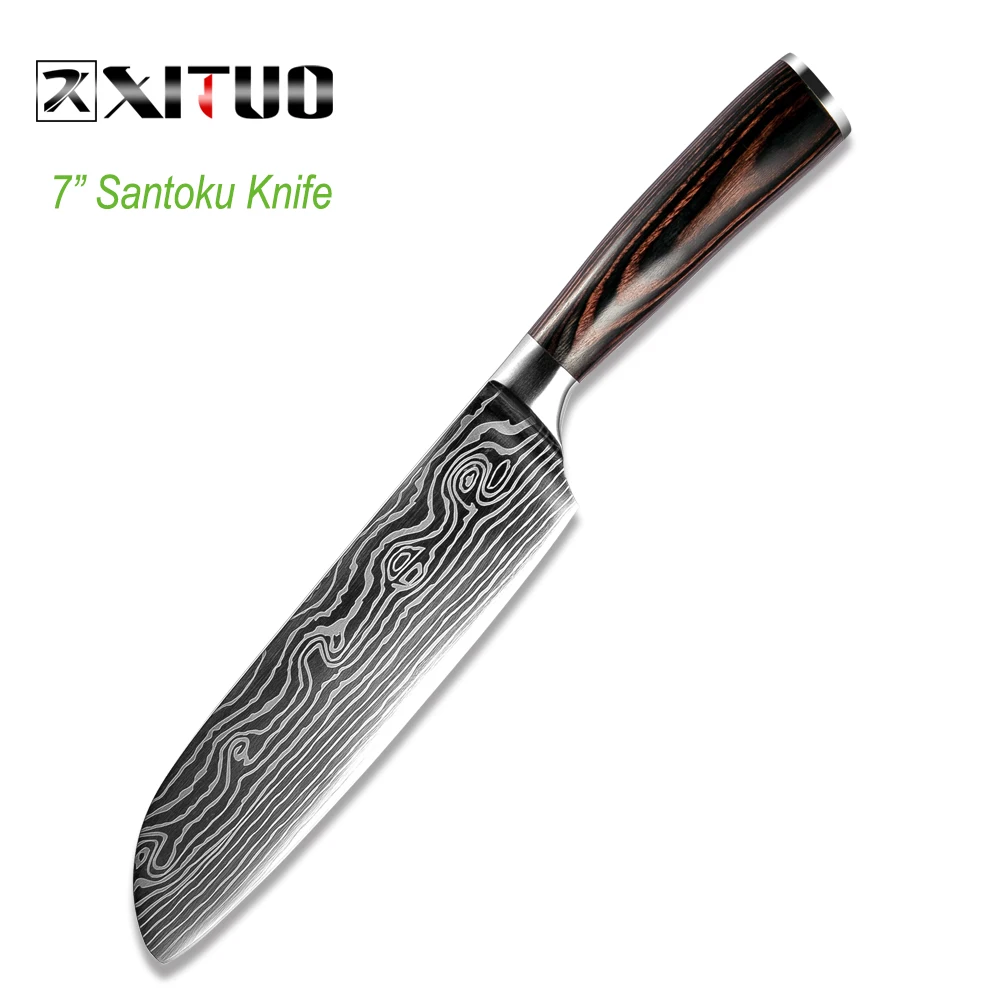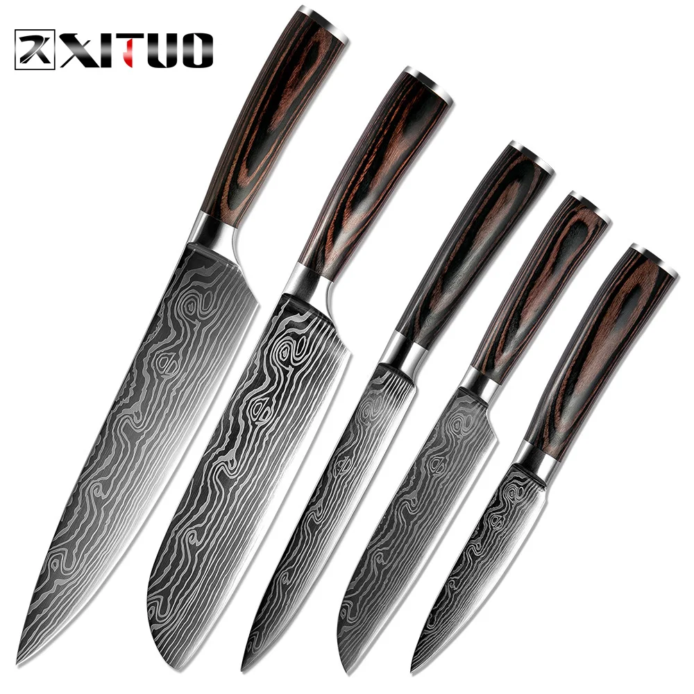 Special Offer XITUO 5 pièces Messenset Pakka Couteaux de Cuisine Japonais En Acier Damas Motif Couteau Santoku D office Santoku Trancheuse Outil Utilitaire Discount 40% Today!