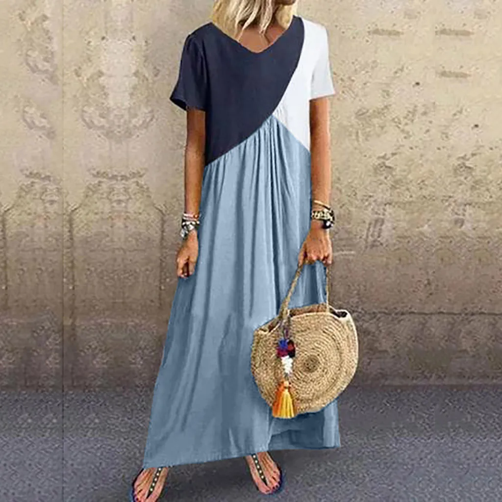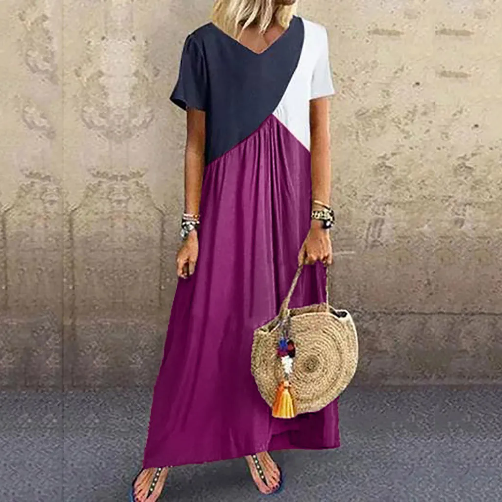 Product Name: 2019 été femmes décontracté longue robe géométrique Patchwork en vrac dames à manches courtes fête Boho robes Maxi robe Vestidos Verano