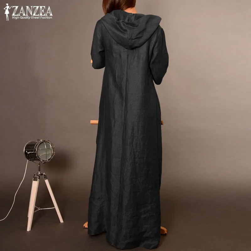 Product Name: 2019 ZANZEA automne Robe à capuche femmes Robe d été grande taille Punk décontracté fermeture éclair longue Vestidos Femme à manches longues tunique Robe Femme