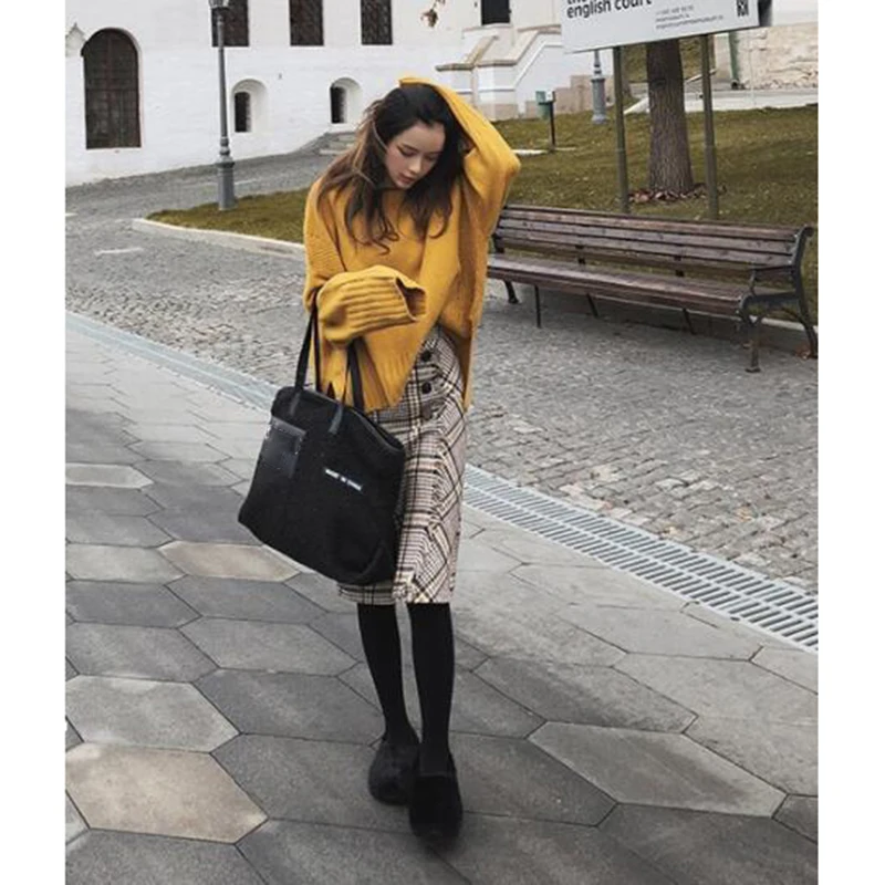 Product Name: Mishow femmes 2018 taille haute mi longue jupe automne plaid Vintage all match Style une ligne jupe MX18D1873