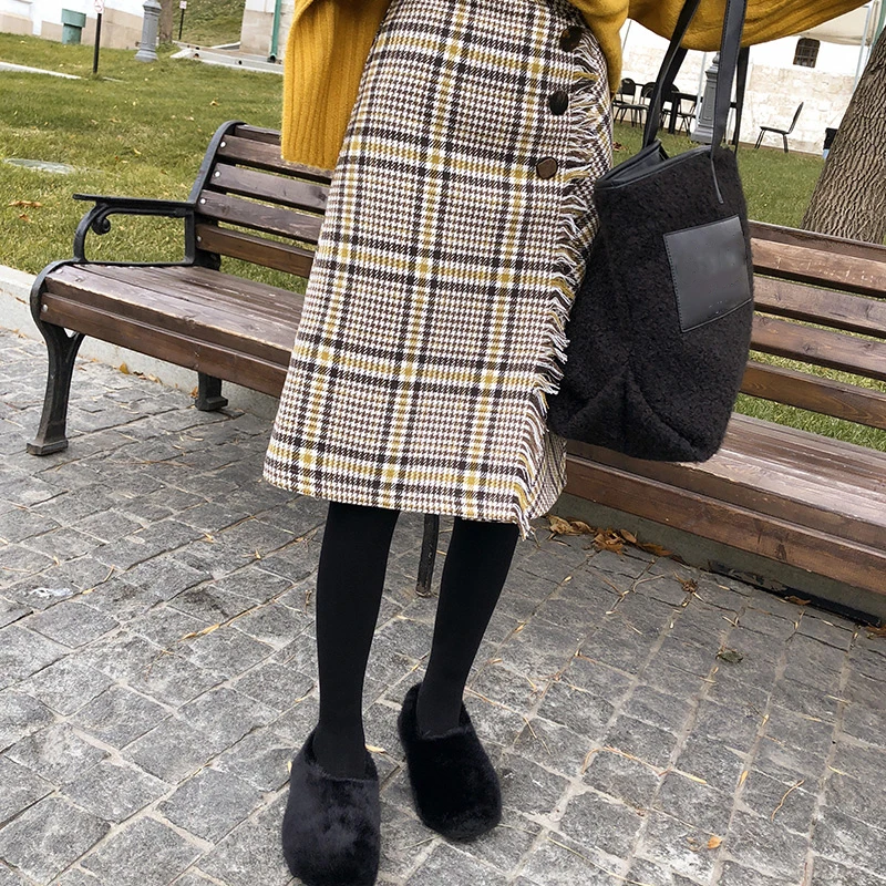 Special Offer Mishow femmes 2018 taille haute mi longue jupe automne plaid Vintage all match Style une ligne jupe MX18D1873 Discount 40% Today!