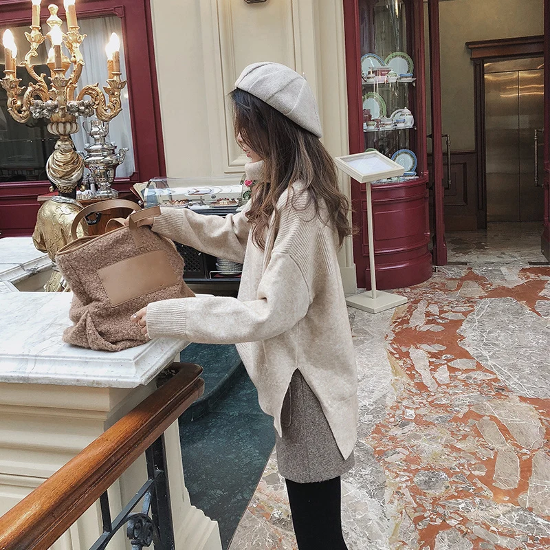 Product Name: Mishow haut pour femme 2018 hiver nouveautés pull manches longues décontracté femme pull lâche col roulé tricoté pulls MX18D5539