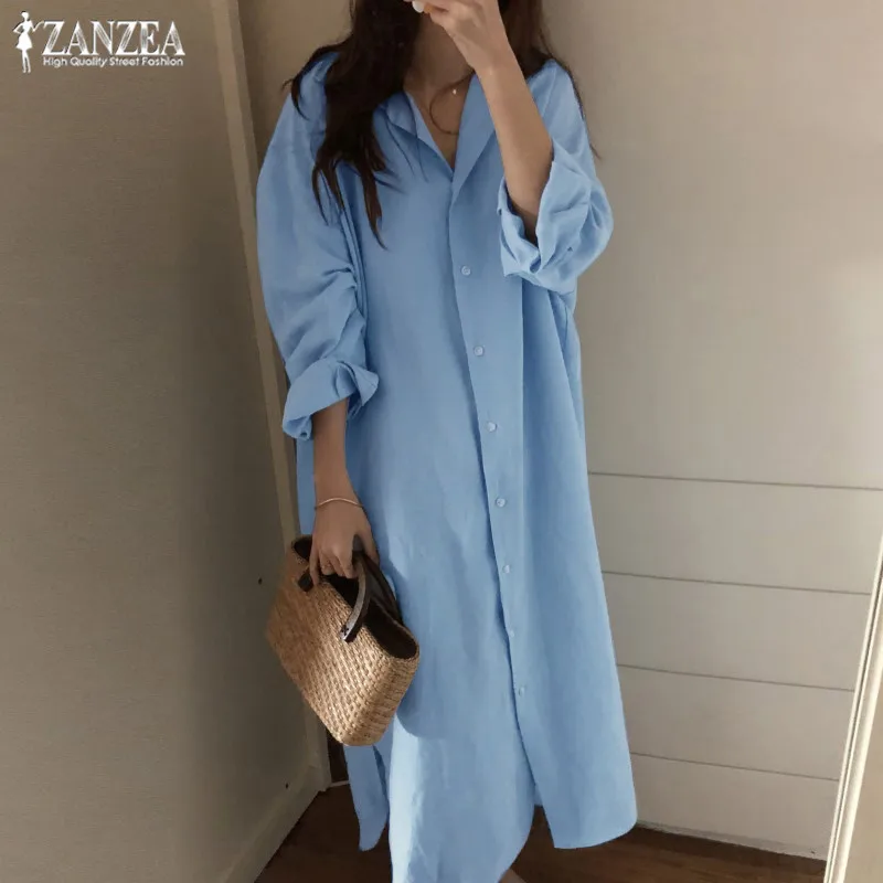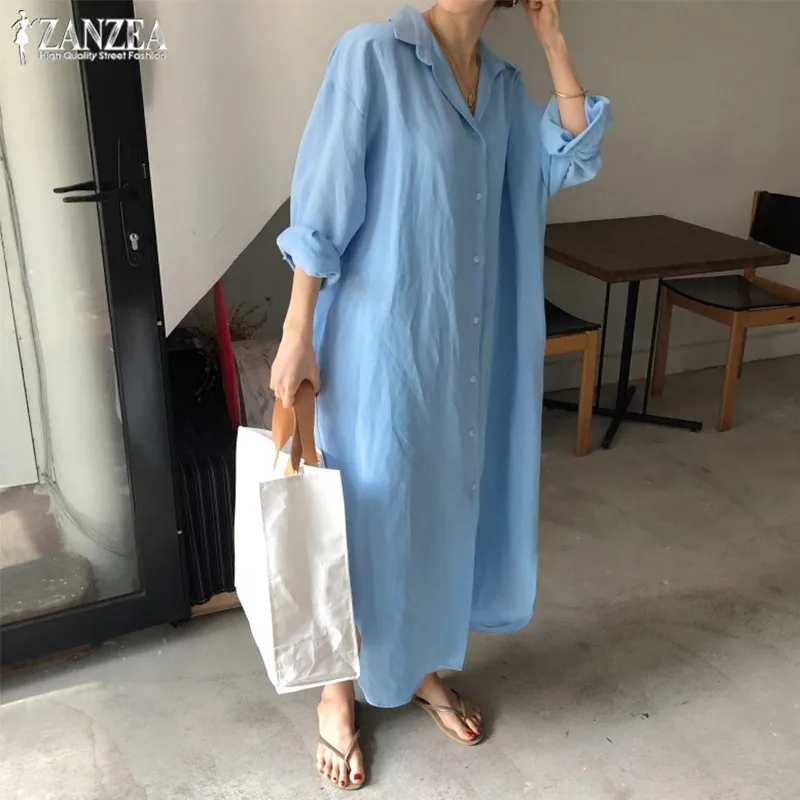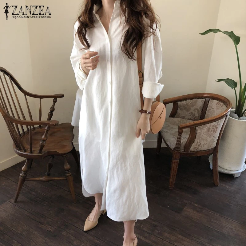 Special Offer 2019 ZANZEA automne longues Maxi robes femmes chemise boutonnée Robe Split Robe Vestido Vintag à manches longues coton Robe oversize Discount 41% Today!