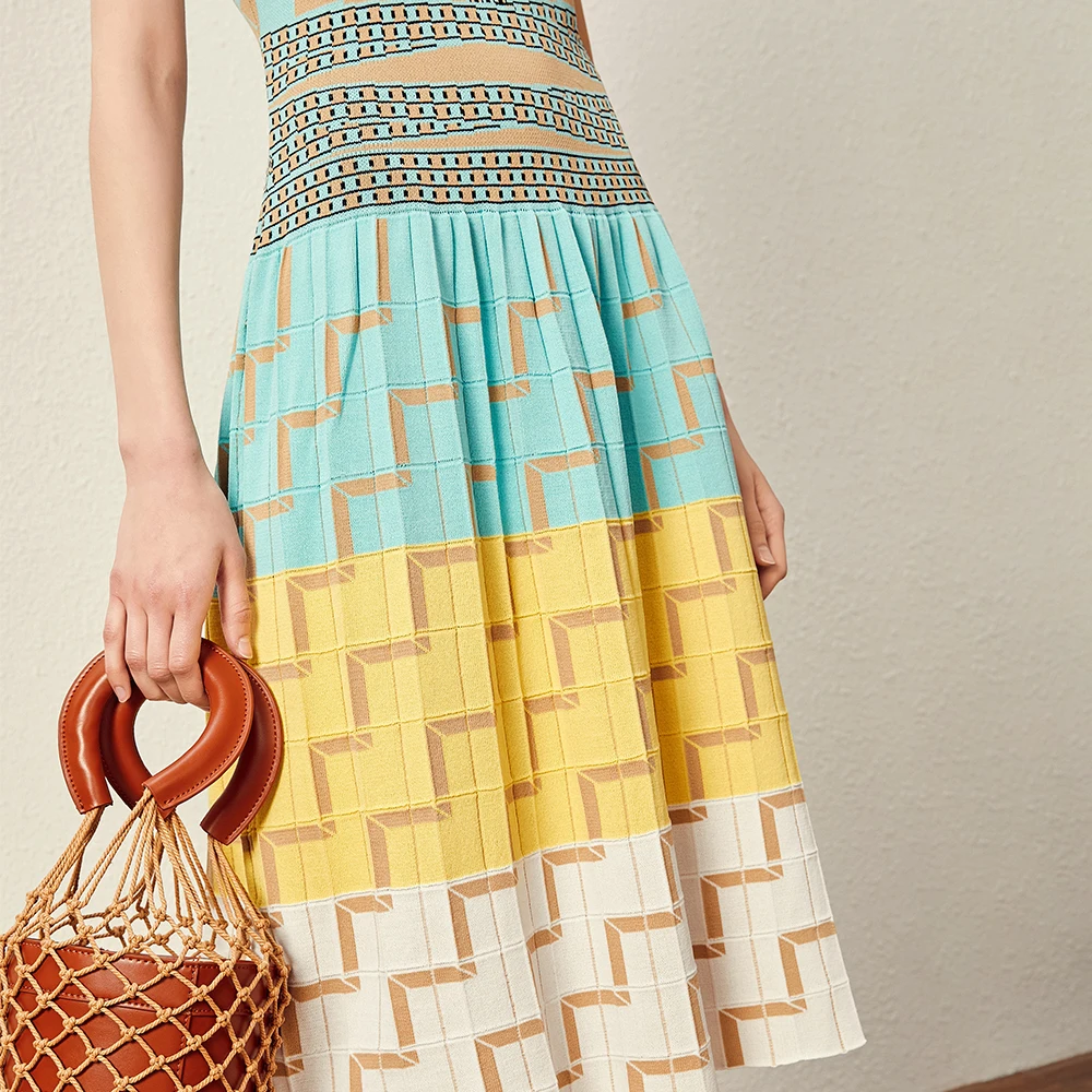 Product Name: 2019 nouvelle haute qualité été sans manches géométrie tricoté robe femmes Slim vacances robes Vestidos