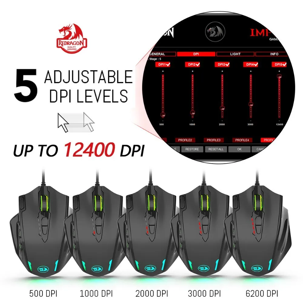 Product Name: Redragon M908 12400 DPI IMPACT souris de jeu 19 boutons programmables rvb LED Laser filaire souris MMO haute précision souris PC Gamer