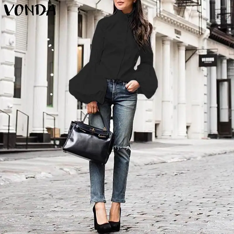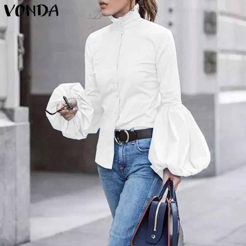 Product Name: Tunique de grande taille femmes Blouse VONDA 2019 automne longue lanterne manches chemise bureau dame Blusas décontracté boutons col roulé hauts