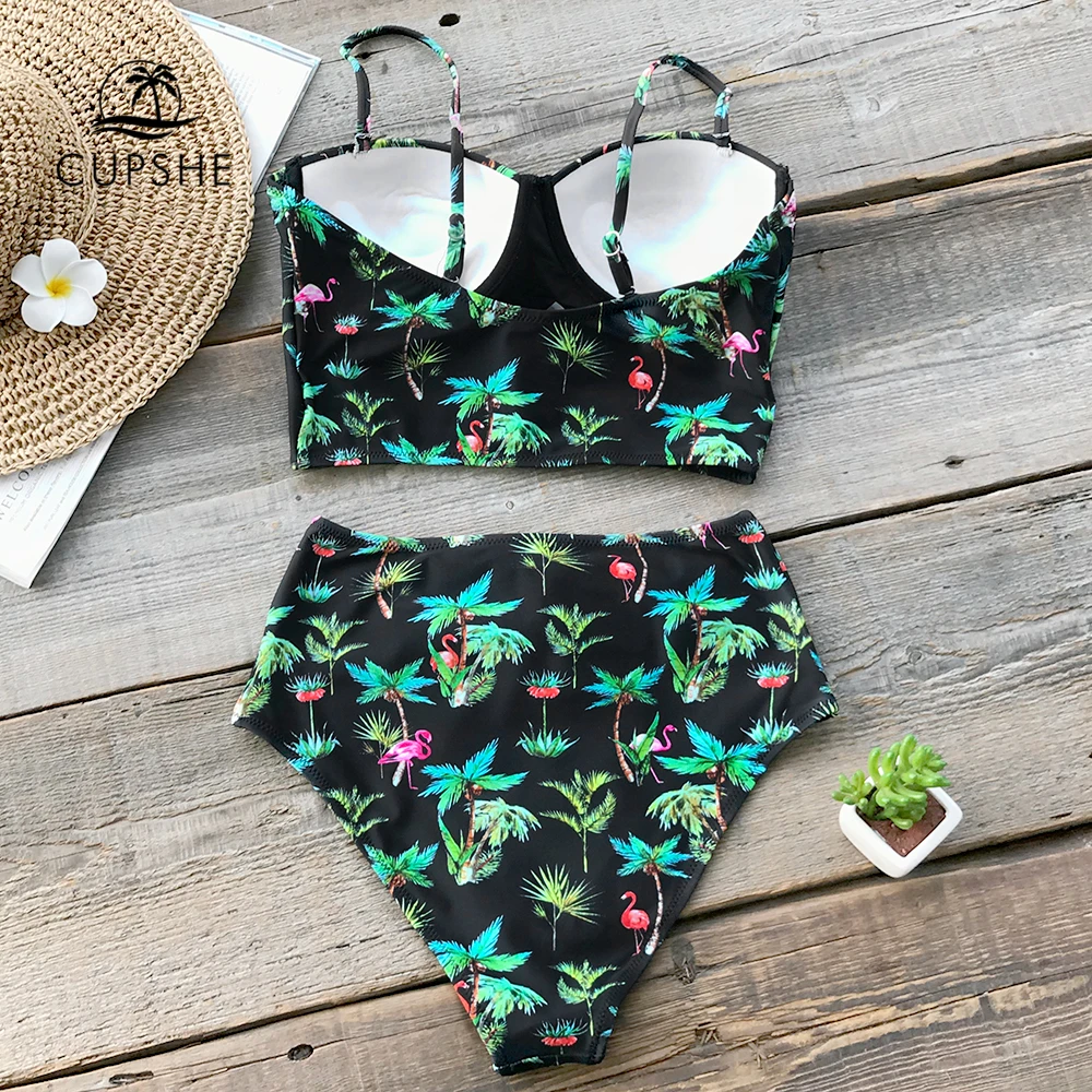 Special Offer Ensembles de Bikini à imprimé palmiers et flamants verts CUPSHE 2019 femmes Sexy Push Up taille haute à lacets maillots de bain en deux pièces Discount 47% Today!