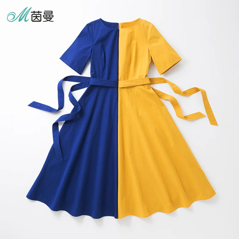 Product Name: INMAN une ligne demi manches femme mi mollet robe 2019 été élégant dames robe femme fille casual longue robe