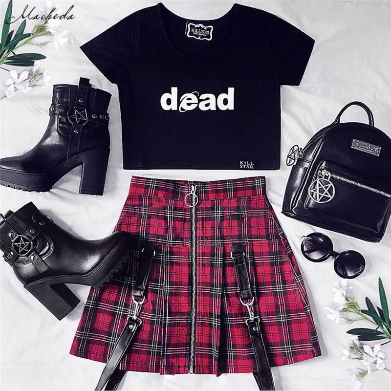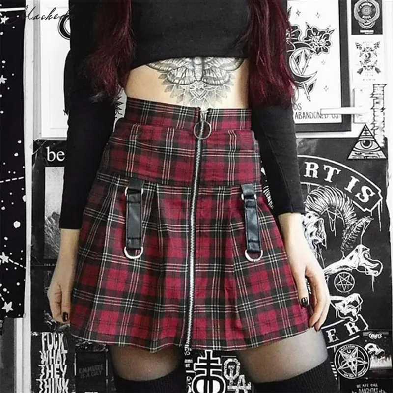 Special Offer Macheda Sexy Mini femmes taille haute boucle sangle jupe Zip treillis mode courte a ligne jupe 2018 nouvelle jupe décontractée Discount 50% Today!