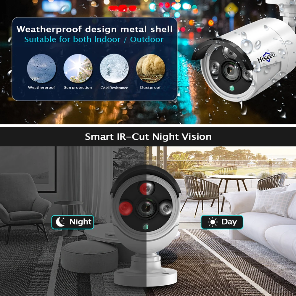 Product Name: H.265 8CH 4MP POE caméra de sécurité système de vidéosurveillance POE NVR extérieur étanche Kit de Surveillance vidéo Hiseeu